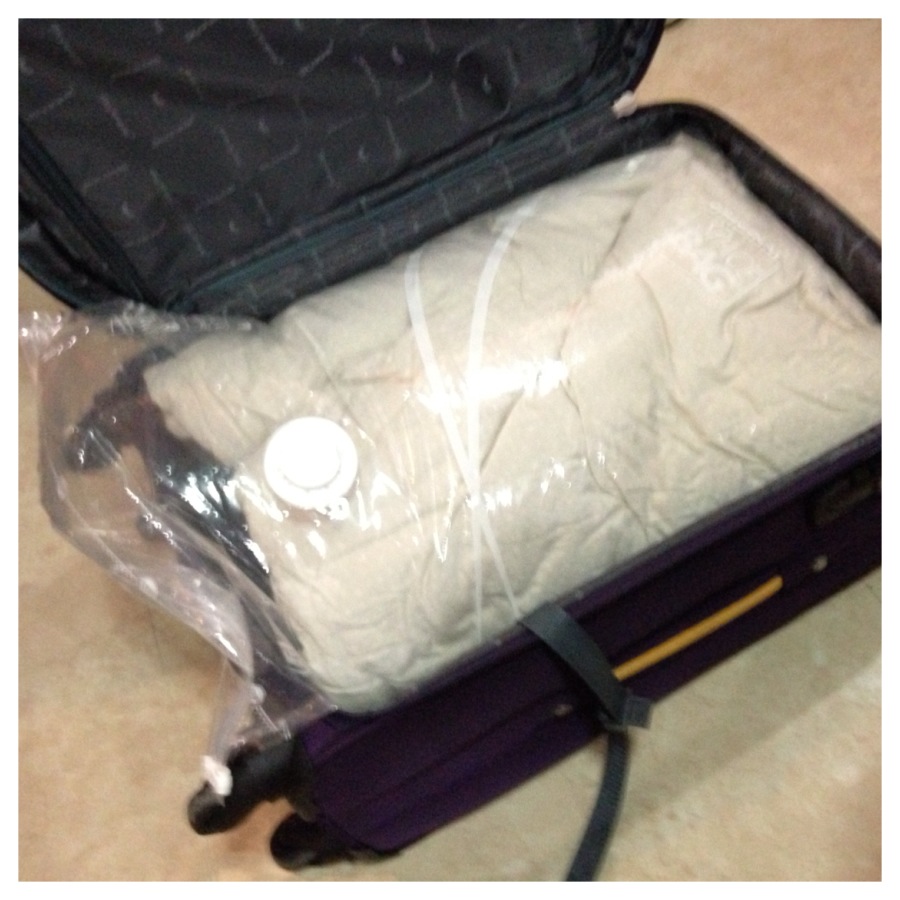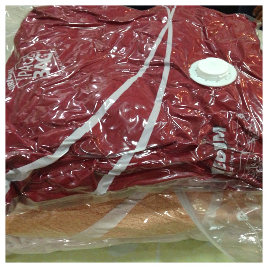 In my recent trip to Walmart, I found this Vacuum Packs for $19.99. By packing through this material, I am able to eliminate air and save some luggage weight.