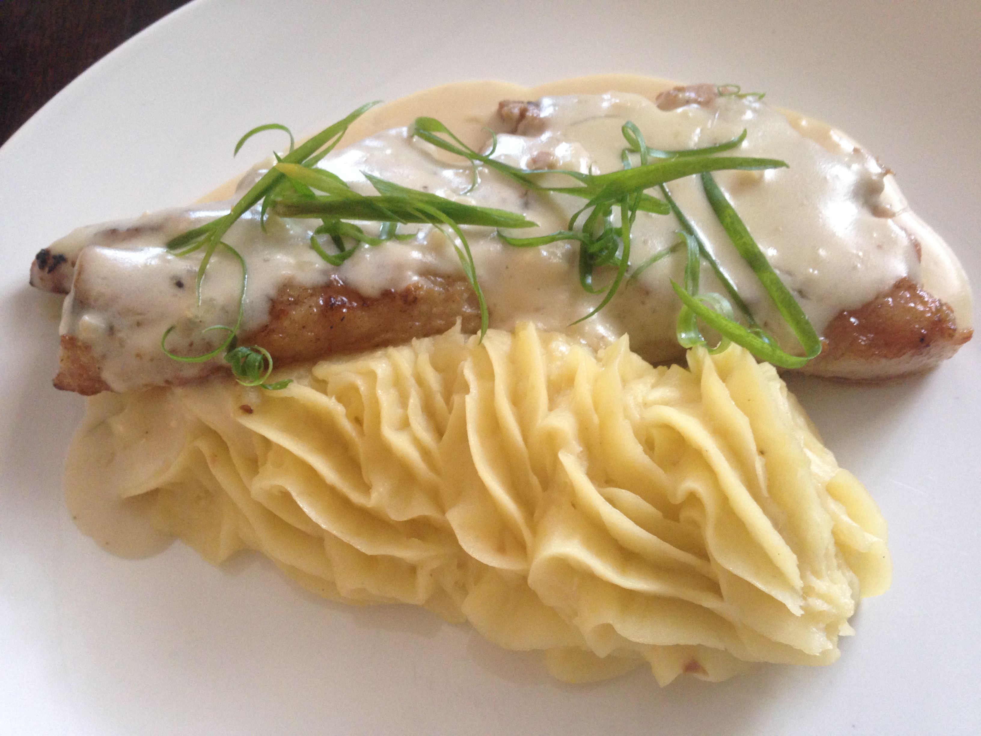 This is Boneless Pork Loin Chop with Roast Garlic Sauce, Php295.00. It also comes with Spicy Pink & Black Peppercorn Sauce and Creamy Diane Herb Sauce. Creamy Diane Herb Sauce is a familiar Filipino taste. If you're not adventurous with food, I suggest you choose this sauce.