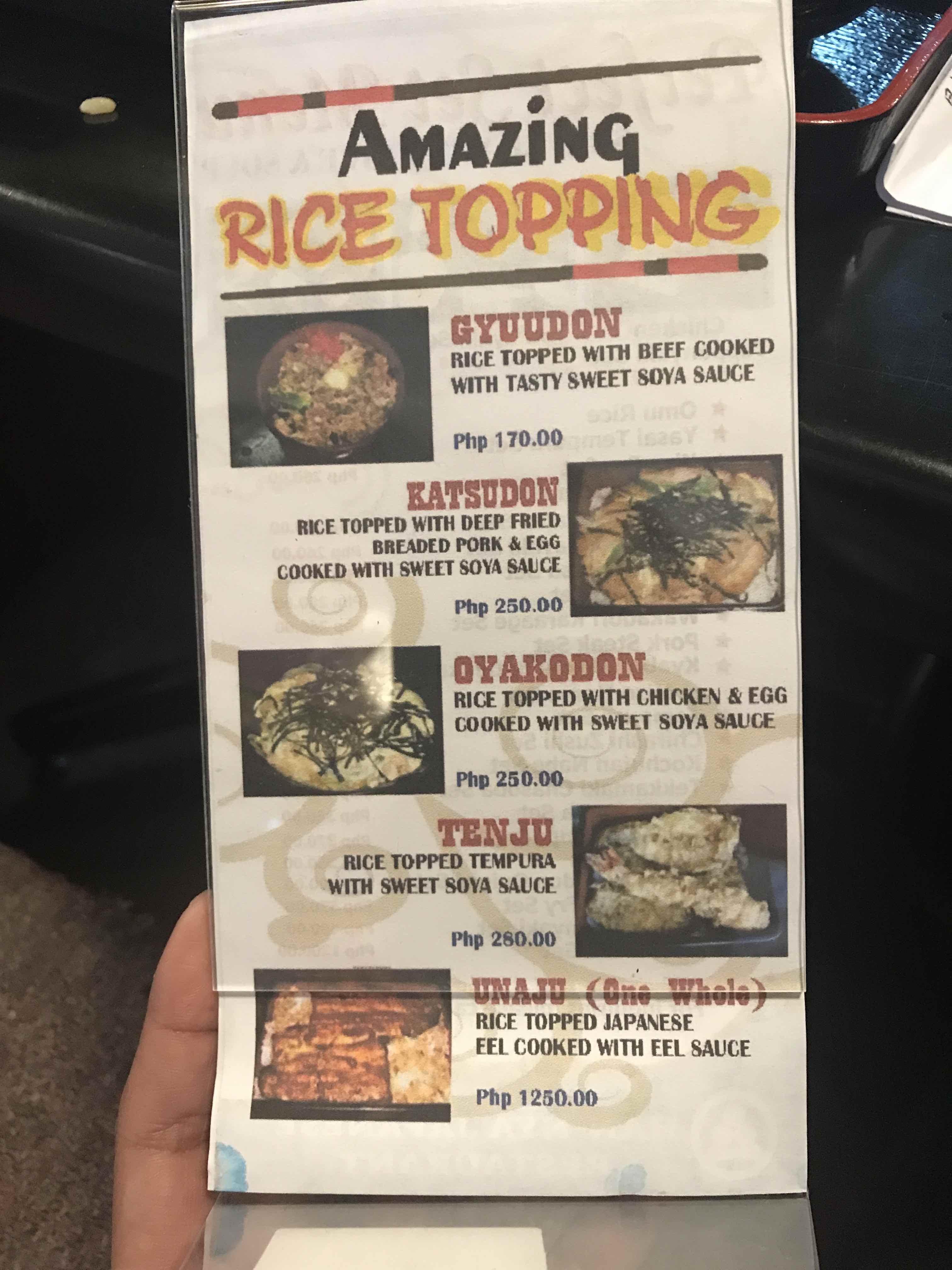 Aside from the food looking and tasting delicious, it also not as expensive as the other Japanese restaurants in town. You may see for yourself. Here's a summary of their menu.