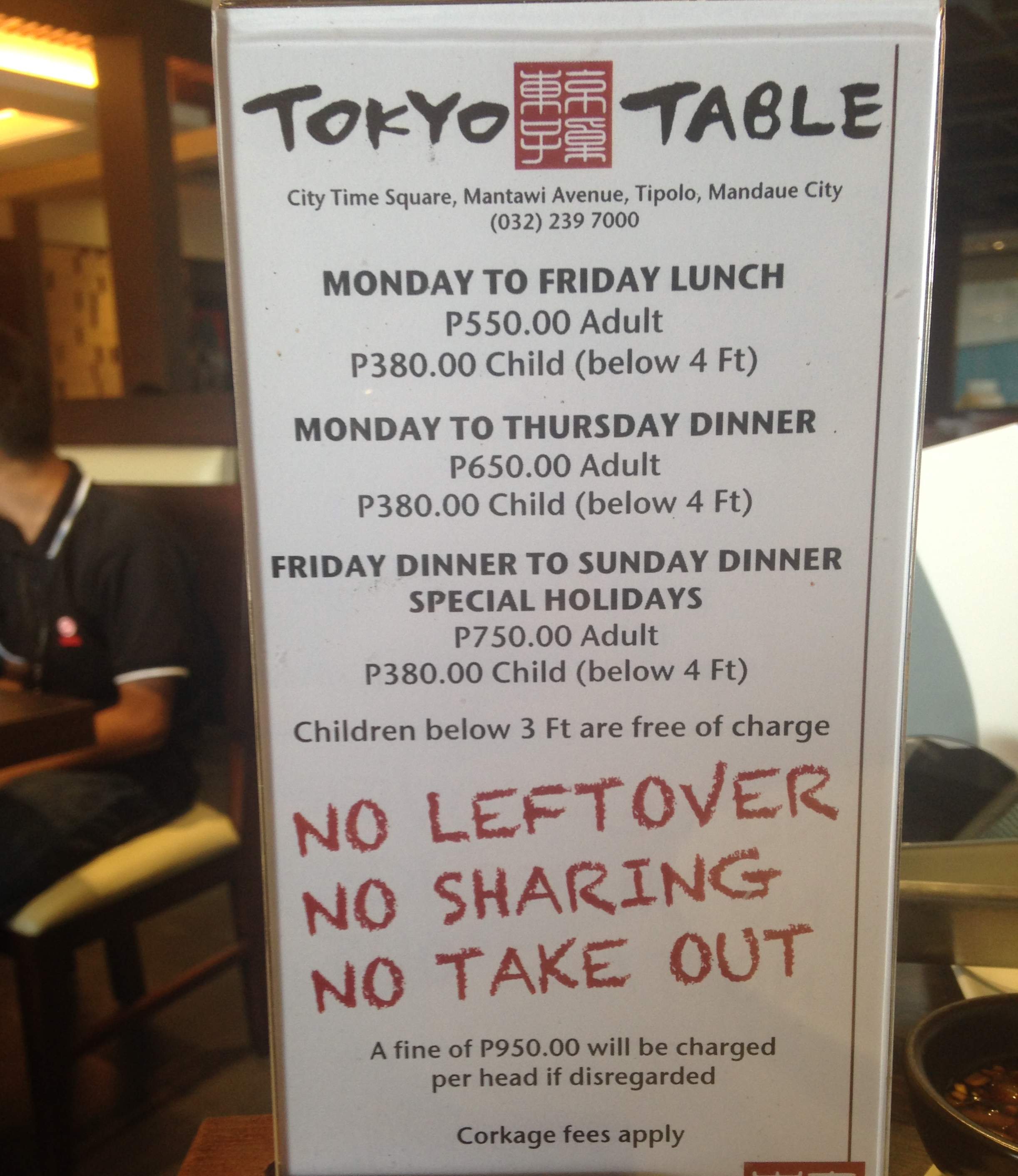 If you let the food over-excite you, though, and fail to finish your food, that's expensive. You will pay a fine of Php950.
