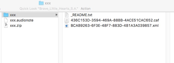2. Change the filename extension of the newly created file (the duplicate) to .zip. Original file extension should be .audionote copy.